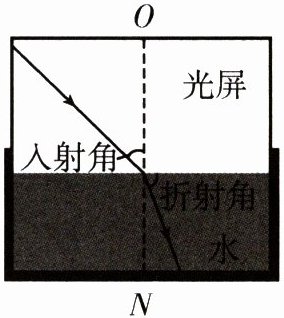 5. 在探究光的折射规律的实验中,小玉同学利用激光笔、水槽、水和一个可绕 $ ON $ 折转的光屏进行实验。
