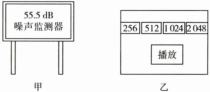 例2 下图是生活中的两个情境,图甲是居民小区噪声监测器,显示环境的噪声为55.5 dB。图乙是手机上的一个软件,可以播放频率为256 Hz、512 Hz、1 024 Hz、2 048 Hz的标准音。下列说法正确的是(
