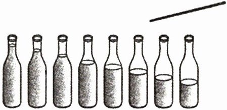 例2 用一组盛有不等量的水的相同的瓶子就可以组成一个“乐器”,通过敲击瓶子就可以演奏出优美动听的乐曲。被敲击的瓶子发出的音符与瓶中空气柱长度的对应关系如图所示。