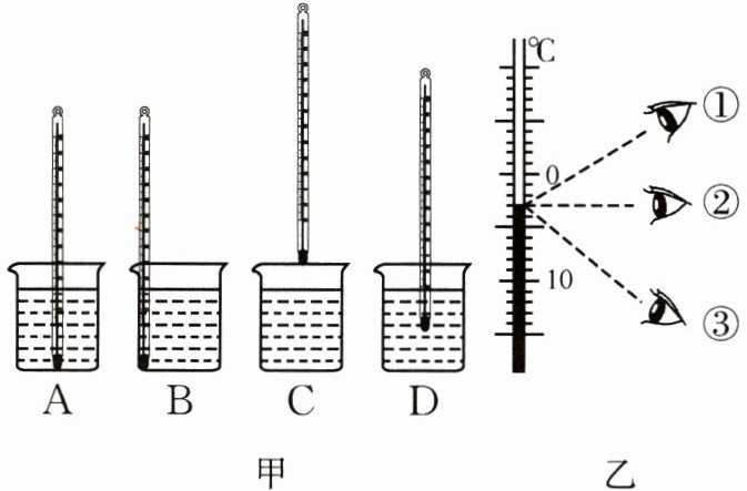 。如图乙所示,用温度计测某物体的温度,图中读数方法正确的是______②