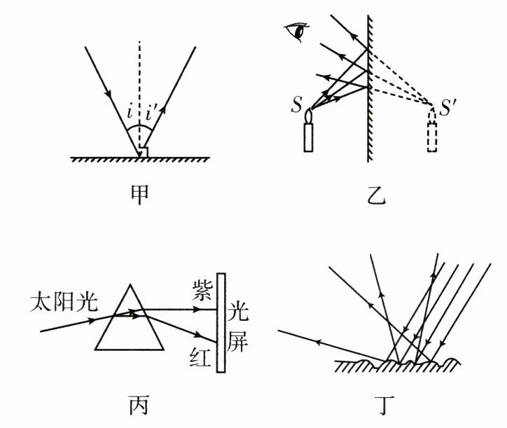 D.图丁,在光的漫反射现象中,也遵循光的反射定律