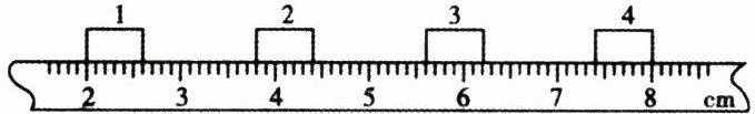 解析 根据题图可知,木块做匀速直线运动;木块从位置1运动到位置2的距离是3.80 cm-2.00 cm=1.80 cm;木块从位置1运动到位置4所用的时间为$t=0.02\ s×3=0.06\ s$,根据题图可知,木块运动的距离$s=7.40\ cm-$$2.00\ cm=5.40\ cm=0.0540\ m$,木块从位置1到位置4运动的平均速度$v=\frac{s}{t}=$$\frac{0.0540\ m}{0.06\ s}=0.9\ m/s$。