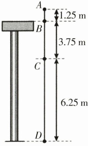 6. 我国运动员在 2023 年世界泳联跳水世界杯西安站女子单人 10 m 跳台预赛中,出色地完成了“207C”动作。将其下落阶段中的一段运动简化为直线运动,其中 A、B、C、D 四点是运动员下落过程中的四个位置,相邻两点间的时间间隔为 0.5 s,距离如图所示。在此段运动过程中,下列判断正确的是( )。