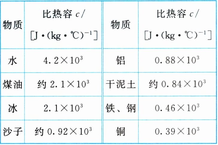 |物质|比热容$c/[J·(kg·℃)⁻^1]$|物质|比热容$c/[J·(kg·℃)⁻^1]$|