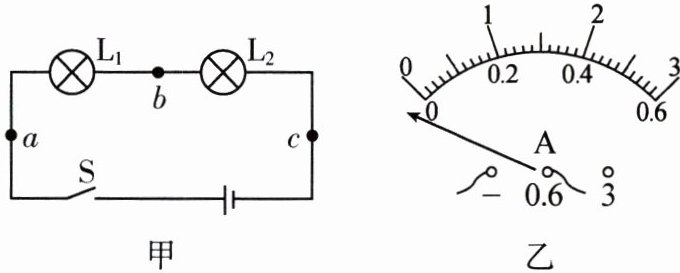 2. 图甲是小明探究串联电路中各处电流关系的实验电路图。
