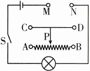 2. 一滑动变阻器铭牌上标有“50 Ω 2 A”的字样,则该滑动变阻器允许通过的最大电流为______A,滑动变阻器是通过改变______来改变电阻的。如图所示,要使滑动变阻器的滑片P向A端滑动时,小灯泡变亮,可以将滑动变阻器的C接线柱与______接线柱分别接在电路的M、N两端。