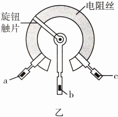 3. 图甲是常用的一种可调风速的小风扇,图乙为其用于调风速的电位器结构图,a、b、c是它的三个接线柱,a、c分别与弧形电阻丝的两端相连,b与旋钮触片相连。下列有关说法正确的是( )