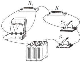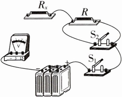 (2)当开关$S_1$、$S_2$闭合时,电压表示数$U_1 = 6V$;当开关$S_1$闭合、$S_2$断开时,电压表示数$U_2 = 4V$。已知$R = 10Ω$,则电源电压$U= $______$V$,$R_x= $______$Ω$。