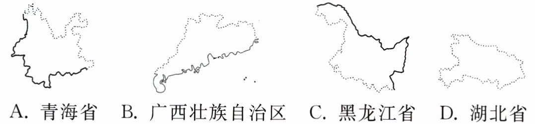 4. 某快递包裹的收件地邮政编码为430070,该包裹寄往的省级行政区名称及轮廓(比例尺不同)正确的是( )