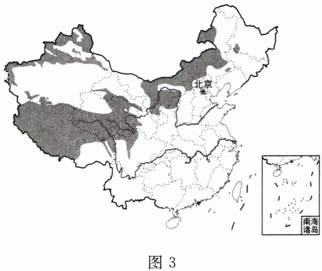 材料二 下列是中国三种主要土地资源利用类型分布图。