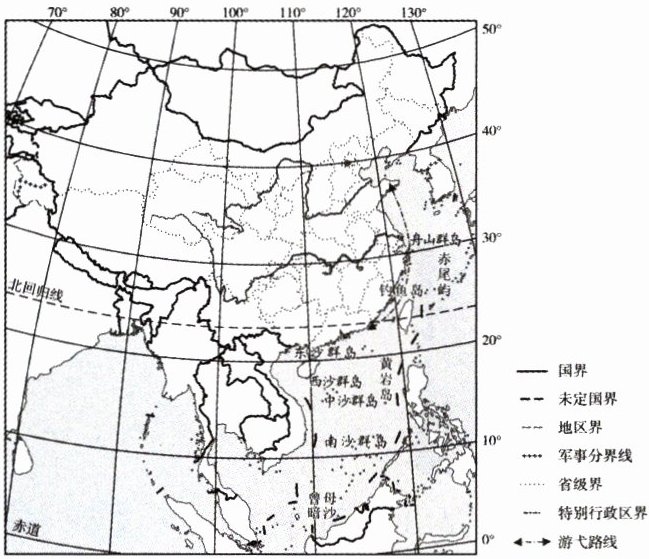 2022年5月20日,全球最大的智慧渔业大型养殖工船“国信1号”在青岛交付运营。该船以“船载舱养”模式常年在大海中游弋,利用深远海优质海水,养殖大黄鱼、石斑鱼、大西洋鲑鱼等名优鱼种,被称为移动的“海洋牧场”。读中国的疆域图,完成1~3题。