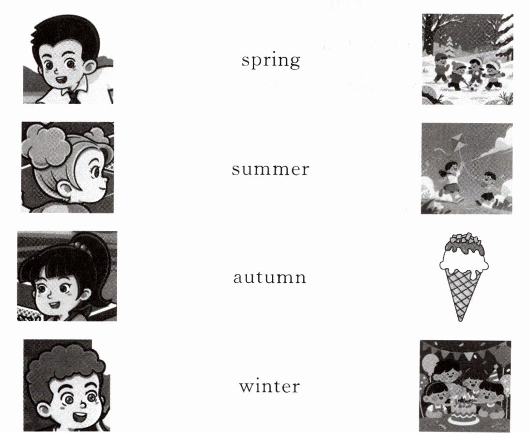 由于您未提供具体的人物信息、录音内容以及各季节对应的活动选项,无法完成连线题的解答。请您补充完整题目信息(如人物名称、各季节可能的活动选项等),以便我按照要求为您提供解析和答案。