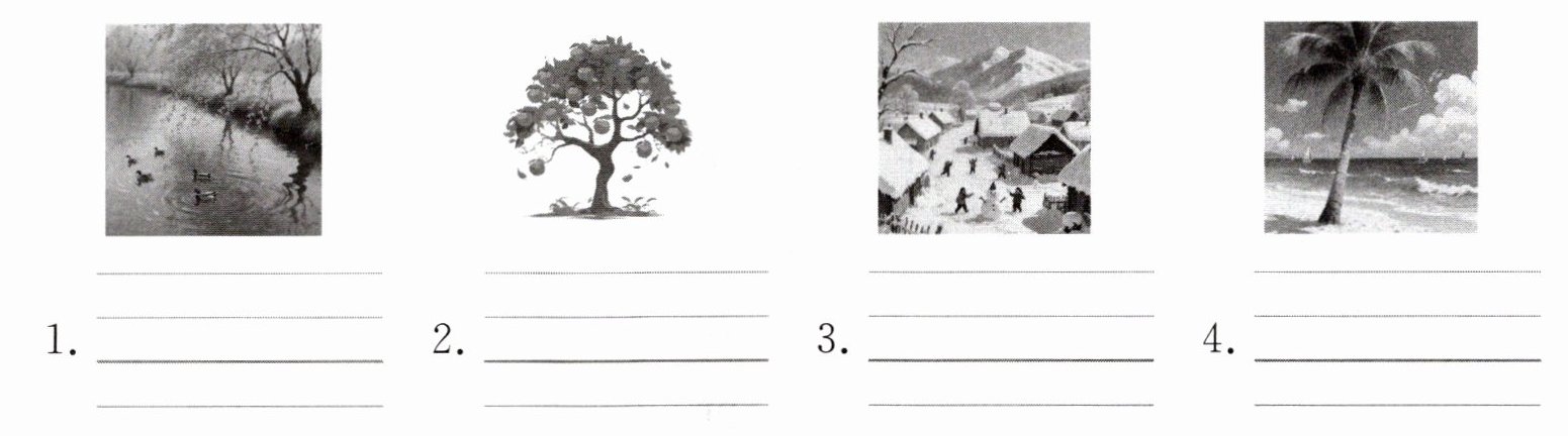 3. Leaves turn yellow or red. Fruits are ripe(成熟) on the trees. The season is