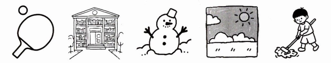 二、录音中有五个句子,每个句子听两遍,然后为下列图片排序。