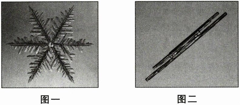 6. 图一。谢道韫描述的雪如柳絮般轻盈飘逸,图一雪花形态大而薄,符合“最薄同时最大的雪花”特征,与柳絮飞舞的动态感更契合;图二为细长柱形,更接近“撒盐”的颗粒感。