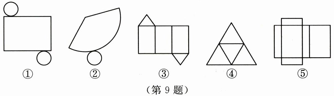 9. 如图,根据图中立体图形的展开图说出立体图形的名称.