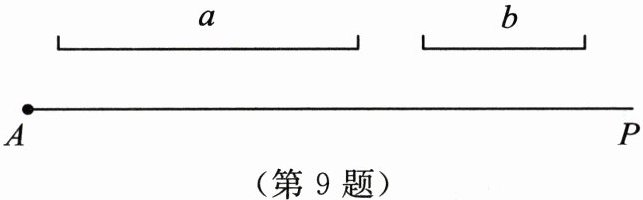 9. 如图,已知线段a,b.下面是小明某次作图的过程:① 画射线AP;② 用圆规在射线AP上截取一点B,使线段AB= a;③ 用圆规在射线AP上截取一点C,使线段BC= b.根据小明的作图过程,解决下列问题.
