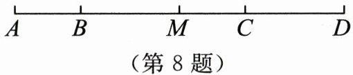 8. 如图,B,C两点把线段AD分成2∶5∶3三部分,M为AD的中点,BM= 6 cm,则CM的长为