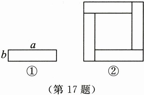 17. 用四个如图①所示的长为 a、宽为 b 的长方形,拼成如图②所示的图案,得到两个大小不同的正方形,则大正方形的周长是