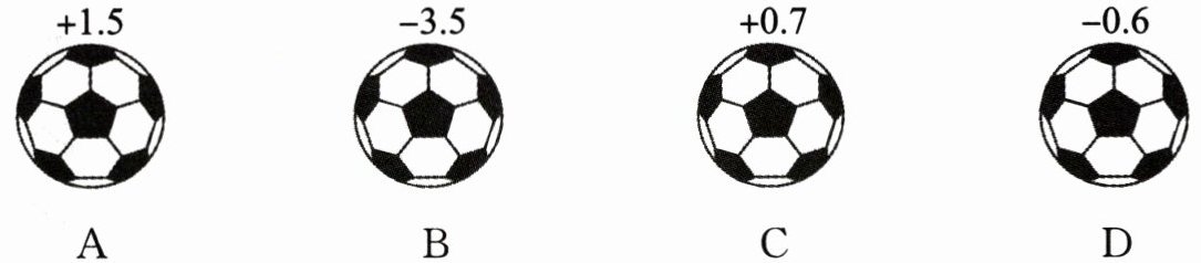 3. 检测足球时,将质量超过标准克数的记为正数,不足标准克数的记为负数.如图,这四个检测过的足球上方标注了检测结果(单位:g),其中质量最接近标准克数的是(