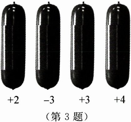3. 市场监督管理局对某品牌火腿肠的抽检中,有四包真空小包装火腿肠,每包以标准克数(450 g)为基准,超过的克数记作正数,不足的克数记作负数.已知抽检结果(单位:g)如图所示,其中实际克数最接近标准克数的是 (