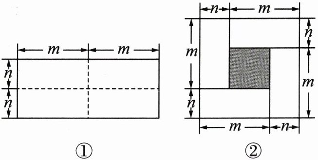 图①是一个长2m、宽2n的长方形,沿图中虚线用剪刀将其均分为四块小长方形,然后按图②所示的方式拼成一个正方形.