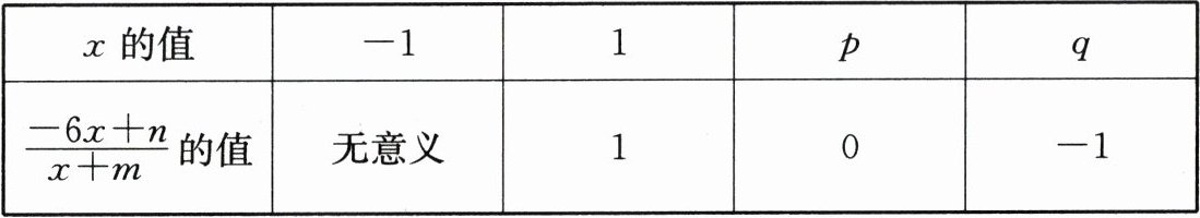 |$\frac{-6x+n}{x+m}$的值|无意义|1|0|-1|