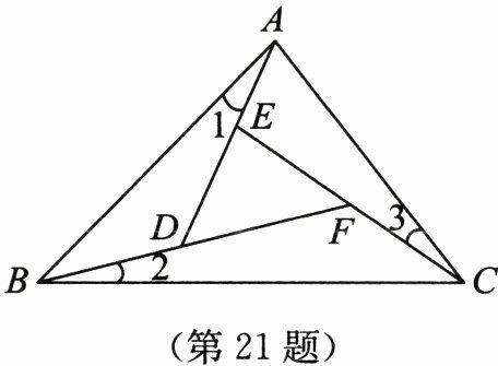 21. (本小题8分)如图,在△ABC中,∠1= ∠2= ∠3.