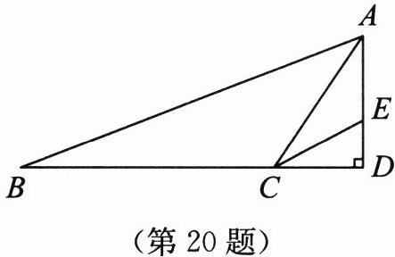 20. (本小题8分)如图,在△ABC中,∠B= 21°,∠BAC= 35°,过点A作边BC上的高,交BC的延长线于点D,CE平分∠ACD,交AD于点E.求: