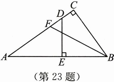 23. (本小题8分)如图,在△ABC中,∠ACB= 90°,D为边AC上一点,DE⊥AB于点E,BF为△ABC的角平分线.