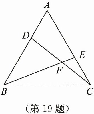 19. (本小题 10 分)如图,△ABC 是等边三角形,点 D,E 分别在 AB,AC 上,AD= CE,CD 与 BE 相交于点 F.