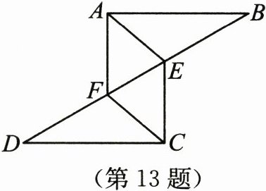 13. 如图,$\triangle ABF\cong \triangle CDE$,$\angle B和\angle D$是对应角,AF 和 CE 是对应边.