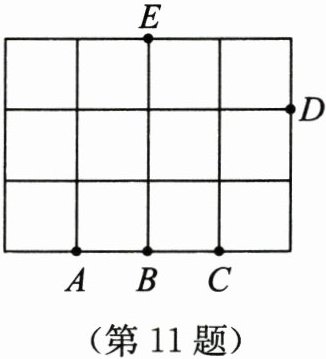 11. 如图,方格中的点A,B,C,D,E称为格点(格线的交点),以这5个格点中的3个格点为顶点画三角形,一共可以画多少个?其中,哪些是直角三角形、钝角三角形、锐角三角形?哪些是等腰三角形?