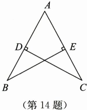 14. 如图,AB= AC,BE⊥AC 于点 E,CD⊥AB 于点 D.求证:BD= CE.