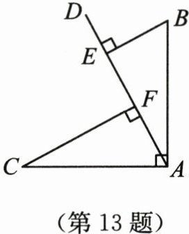 13. 如图,∠BAC= 90°,AD 是∠BAC 内部的一条射线.若 AB= AC,BE⊥AD 于点 E,CF⊥AD 于点 F,求证:AF= BE.