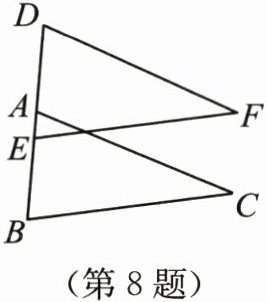8. 如图,点 A,B,D,E 在同一条直线上,$AC= DF,BC= EF$,$AD= BE$,$\angle BAC= 72^{\circ},\angle F= 32^{\circ}$,则$\angle B$的度数为______