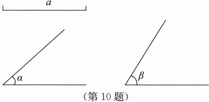 10. 已知线段 a,$\angle \alpha$,$\angle \beta$,求作△ABC,使$BC= a$,$\angle B= \angle \alpha$,$\angle C= \angle \beta$.
