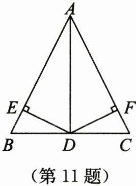11. 如图,AD是△ABC的中线,DE⊥AB,DF⊥AC,垂足分别为E,F,BE= CF.求证: