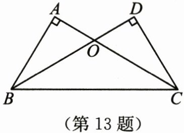 13. 如图,∠A= ∠D= 90°,AC= DB,AC,DB相交于点O.求证:△ABO≌△DCO.