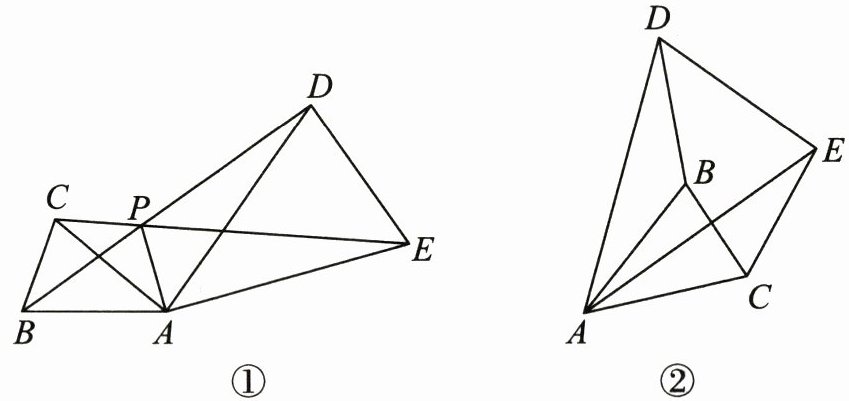 如图①,AB= AC,AD= AE,∠BAC= ∠DAE= α,直线BD,CE交于点P,连接AP.