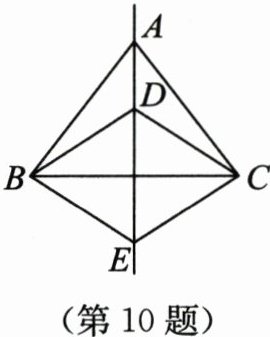 10. 如图,$AB = AC$,$DB = DC$,点 $E$ 在直线 $AD$ 上.求证:$BE = CE$.