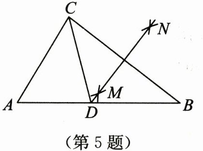 5. 如图,在△ABC中,AB>AC,按以下步骤作图:分别以点B和点C为圆心,大于$\frac{1}{2}$BC的长为半径作圆弧,两弧相交于点M和点N,作直线MN交AB于点D,连接CD.若AB= 6 cm,AC= 4 cm,则△ACD的周长为______cm.