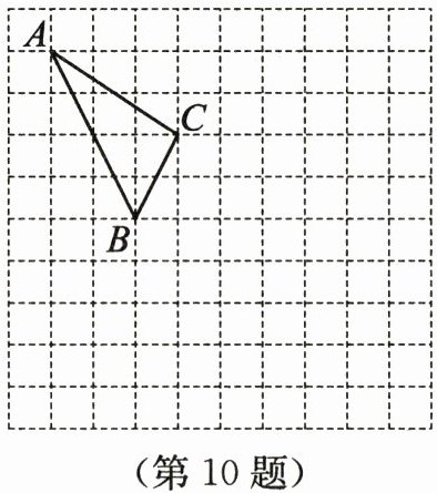 10. 如图,在正方形网格中,每个小正方形的边长都为1,$\triangle ABC$的顶点都在网格线的交点上,点$B关于y轴的对称点的坐标为(2,0)$,点$C关于x轴的对称点的坐标为(-1,-2)$.