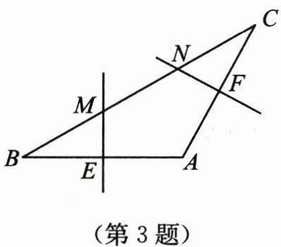 3. 如图,在△ABC 中,$AB= AC$,$\angle BAC= 120^\circ$,$BC= 6\ cm$,AB 的垂直平分线交 BC 于点 M,交 AB 于点 E,AC 的垂直平分线交 BC 于点 N,交 AC 于点 F,则 MN 的长为(