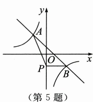 5. 如图,在平面直角坐标系中,直线$y_{1}= k_{1}x + b与双曲线y_{2}= \frac{k_{2}}{x}$(其中$k_{1}\cdot k_{2}\neq0$)相交于$A(-2,3)$,$B(m,-2)$两点,过点 B 作$BP // x$轴,交 y 轴于点 P,则$\triangle ABP$的面积是