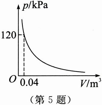 5. 给某气球充满一定质量的气体,在温度不变时,气球内气体的气压$ p $(单位:kPa)是气体体积$ V $(单位:$ m^3 $)的反比例函数,其图象如图所示.