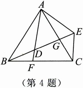4. 如图,$\frac{AB}{AD}= \frac{BC}{DE}= \frac{AC}{AE}$,有下列结论:① △ABC∽△ADE;② AC 平分∠DAE;③ ∠BAD= ∠CAE;④ ∠ABF= ∠ADE.其中正确的个数为 (