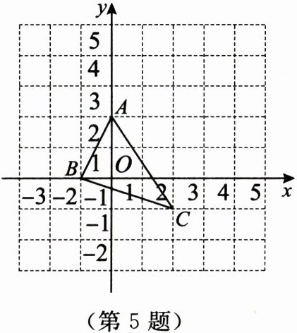 5. 如图,在网格中,△ABC 三个顶点的坐标分别为 A(0,2),B(-1,0),C(2,-1).