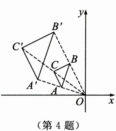 4. 如图,△ABC 与△A'B'C'是位似图形,位似中心为坐标原点 O.若点 A(-3,1)的对应点为 A'(-6,2),则点 B(-2,4)的对应点 B'的坐标为
