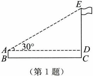 1. 如图,小明利用一个锐角是30°的三角尺测操场上旗杆的高度,已知他与旗杆之间的水平距离 BC 为15 m,AB 为1.5 m(即小明的眼睛与地面的距离),那么旗杆的高度是(